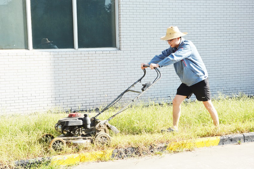 行政部所有员工率先对园区的道路,